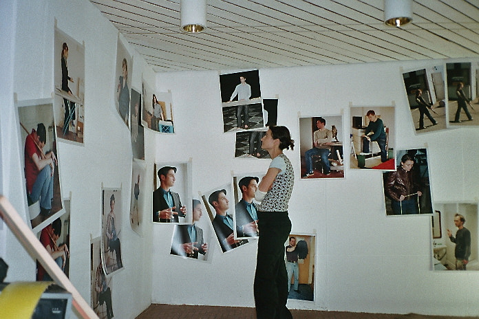 In her current exhibition, “Lagerfeuer” (Campfire), Karin Müller presents an installation featuring photographs, video footage and a blazing campfire. The photographs show people in body language and gestures, recreating found images. In the videos, we encounter once again the male, lonely wolf, the stranger from the Western film, who is searching.